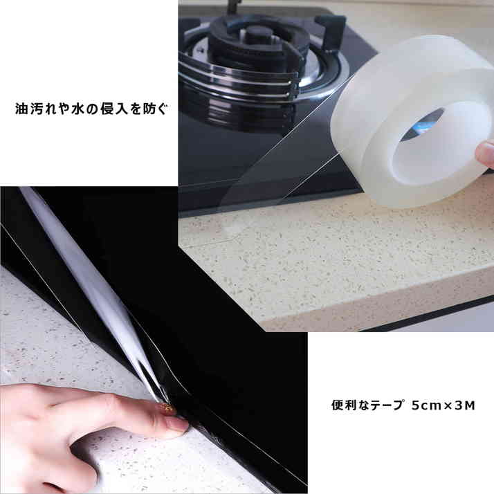 透明 補修 テープ 50mm×3m メジャー付 防水テープ 水漏れ 水回り キッチン バスルーム ベランダ 洗面台 汚れ防止 強 粘着 【送料無料】tak-b66